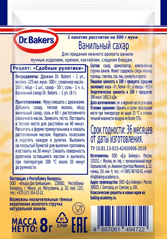 Сахар ванильный Dr.Bakers желтый, 8г