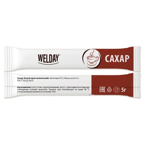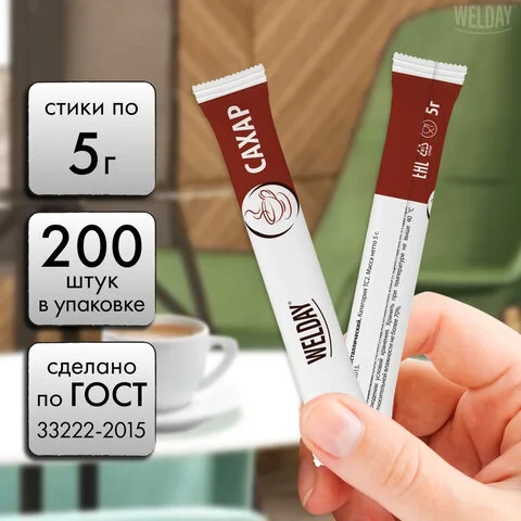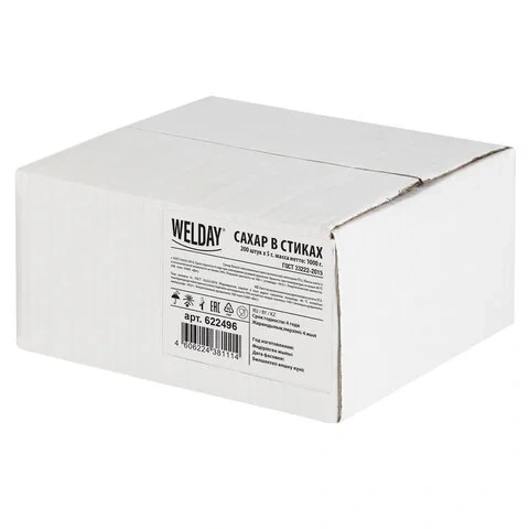 Сахар порционный WELDAY в стиках по 5 г, 200 штук, 622496