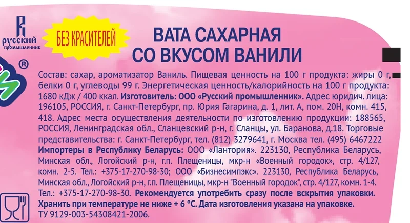 | Вид | сахарная вата |