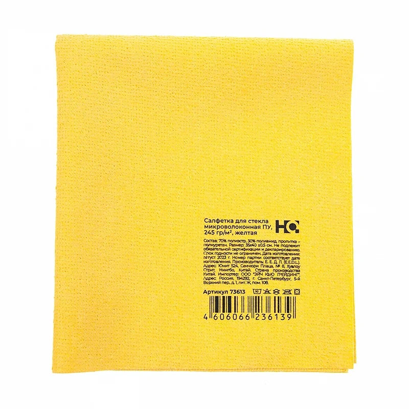 Салфетка для стекла микроволоконная/35*40 см/245 гр/м2/желтый/hq profiline, 73613