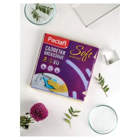 Салфетки Paclan Practi Universal вискозные 38 х 38 см, 3 шт. производятся из нетканого полотна. Универсальные салфетки предназначены для быстрой очистки от пыли и грязи любых поверхностей на кухне или в ванной. Они удобны в использовании: хорошо впитывают влагу, удаляют жир, грязь, легко выжимаются и быстро сохнут. Изделия подходят для сухой и влажной уборки. При использовании они не оставляют разводов на протираемой поверхности. Благодаря высокому качеству нетканого полотна салфетки прочные и устойчивы на разрыв. Их можно применять многократно, они легко стираются при температуре 30С. Особый состав салфеток (вискоза — 70% и полиэстер — 30%) дарит салфетке мягкость и обеспечивает идеальную абсорбцию и эффективность в уборке. Большой размер изделий позволяет быстро и качественно очистить большую площадь загрязненной поверхности.