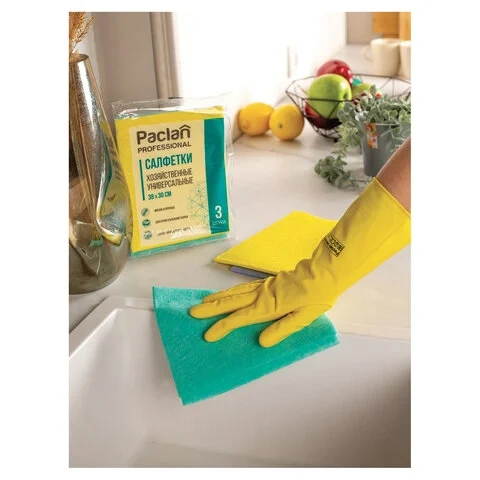 Салфетки хозяйственные повышенной впитываемости Paclan вискоза 38×30 см 90 г/кв.м (3 штуки в упаковке)