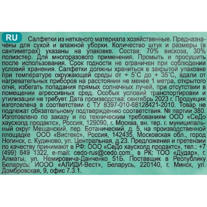 | Вид товара | салфетка хозяйственная |