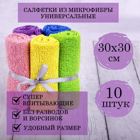 Салфетка из микрофибры 30х30 см 'MULTI COLOUR ECONOMY PACK 10', КОМПЛЕКТ 10 шт., LAIMA HOME, 607794
