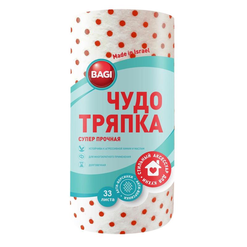 Салфетка хозяйственная Bagi Чудо Тряпка Супер прочная, 20х20см, вискоза, 33шт/уп, в рулоне