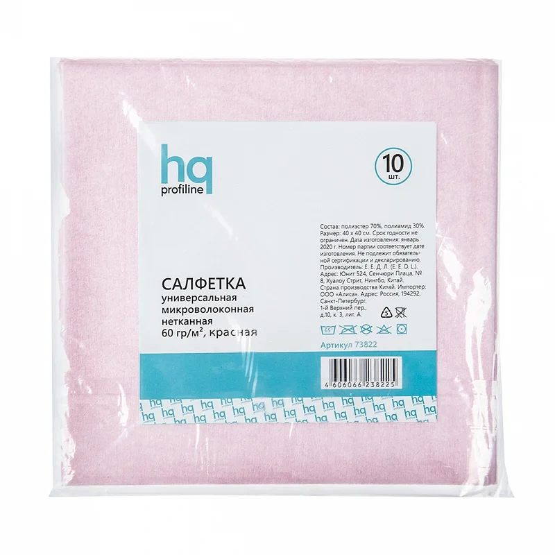 Салфетка хозяйственная Hq Profiline 40х40см, красная, 10шт/уп, 73822
