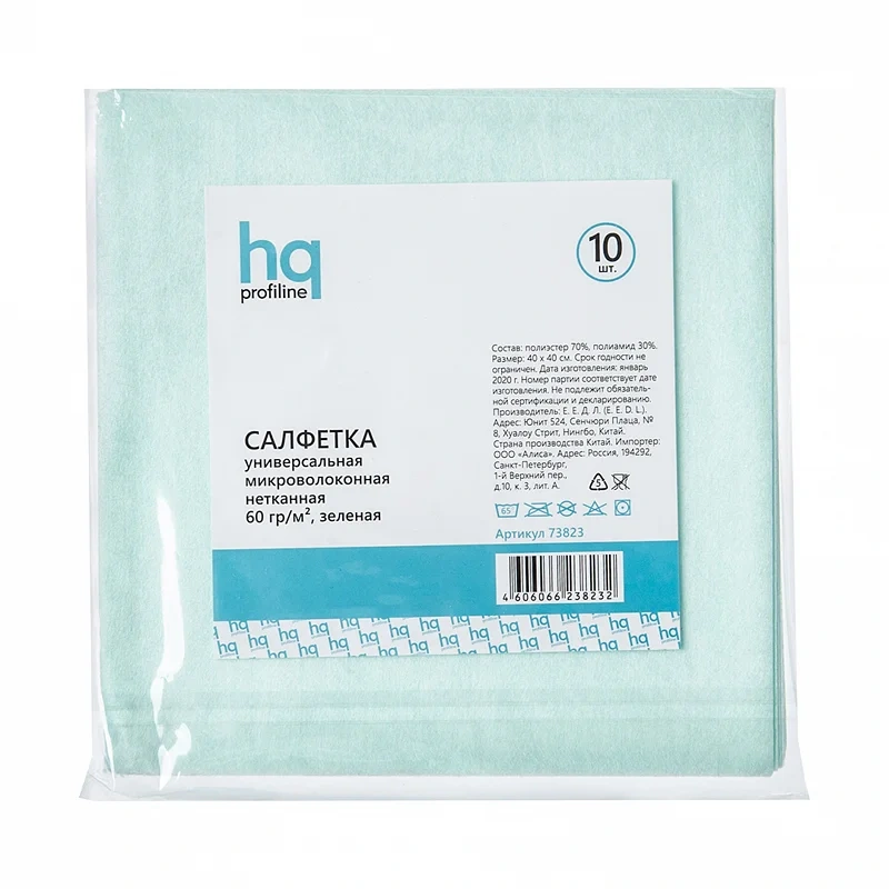 Салфетка хозяйственная Hq Profiline 40х40см, зеленая, 10шт/уп, 73823