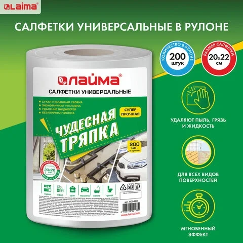 Универсальные салфетки ЛАЙМА в рулоне способны сэкономить не только время, но и деньги, ведь такого количества хватит надолго! Приобретайте товары ЛАЙМА в нашем интернет-магазине!