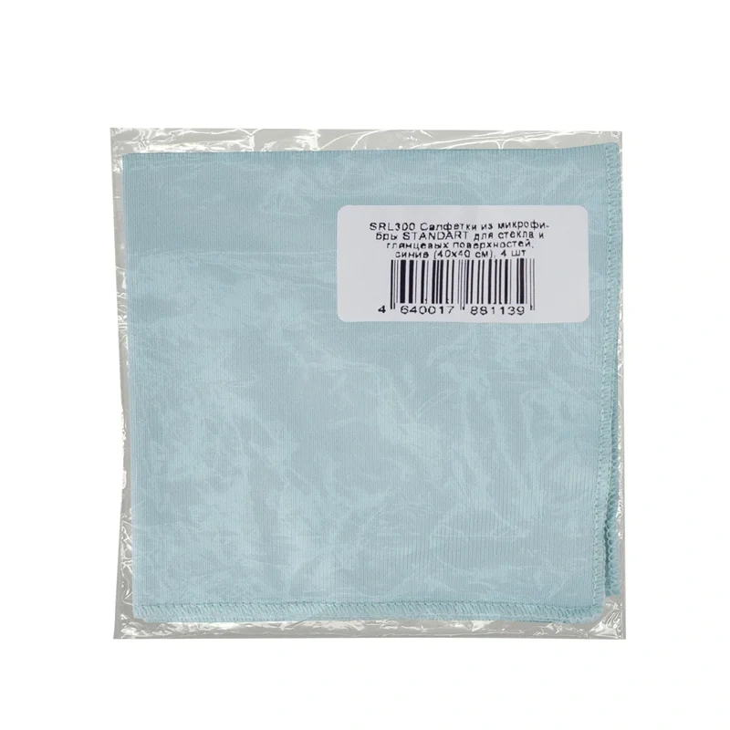 Салфетка хозяйственная Merida Standart SRL300, 40х40см, синяя, микрофибра, для стекла и глянцевых поверхностей, 4шт/уп