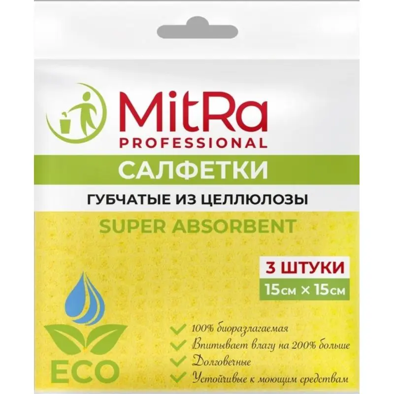 Салфетка губчатая Mitra 15х15см, губчатая, 3шт/уп