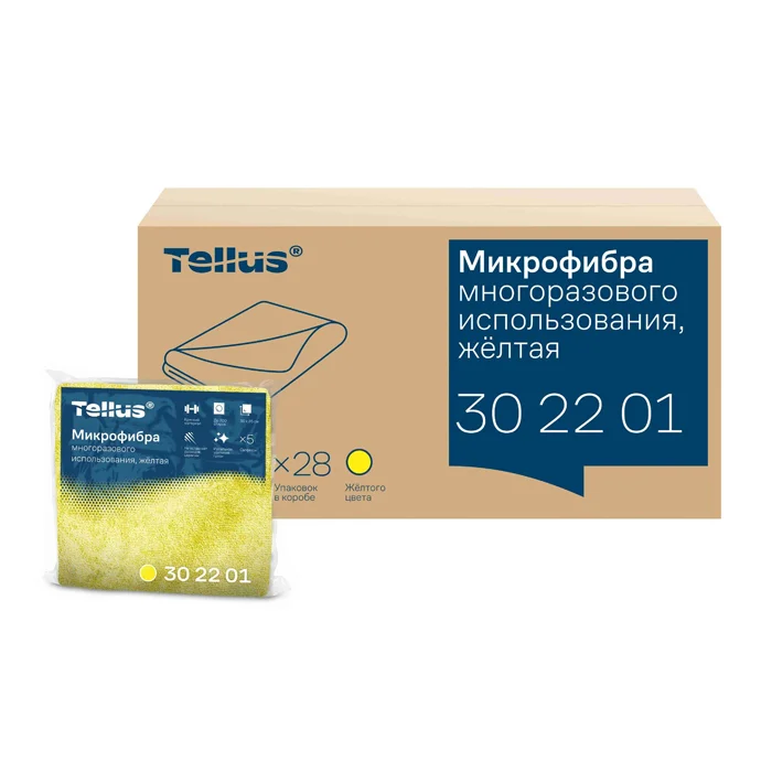 Салфетка хозяйственная Tellus 302201 желтая, 22.5х26.5см, 5шт/уп, микрофибра