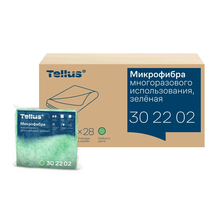 Салфетка хозяйственная Tellus 302202 зеленая, 22.5х26.5см, 5шт/уп, микрофибра