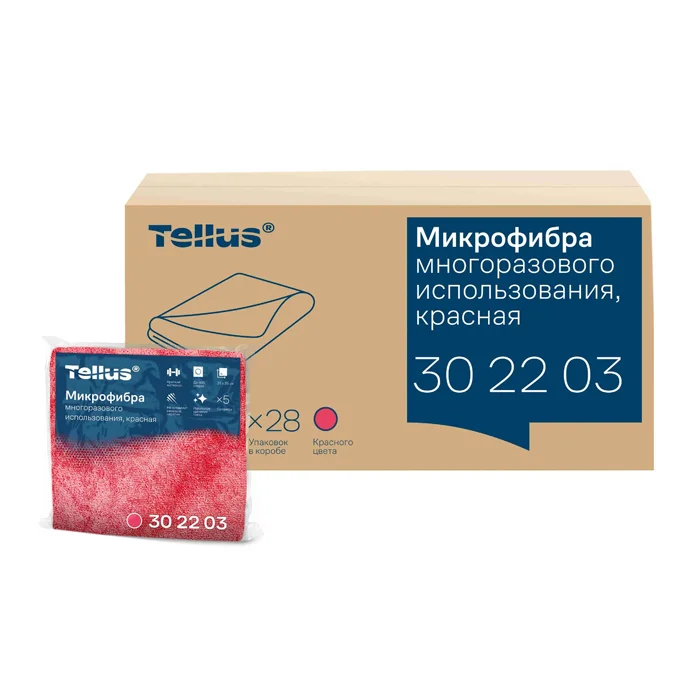 Салфетка хозяйственная Tellus 302203 красная, 22.5х26.5см, 5шт/уп, микрофибра