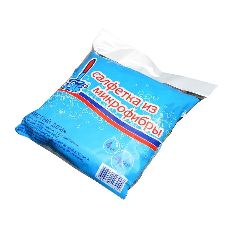 Салфетки хозяйственные микрофибра 29?29 см 4 штуки в упаковке