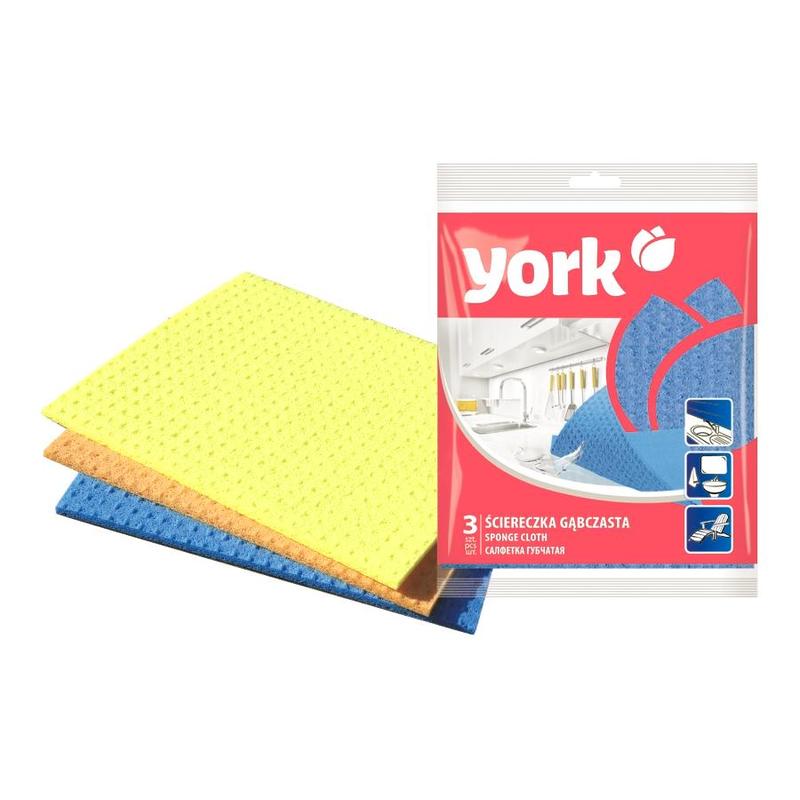 Салфетка хозяйственная York губчатая, 17.5х15.5см, целлюлоза, 3шт/уп