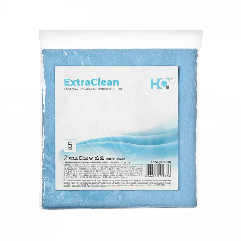 Салфетка нетканая микроволоконная Extra Clean/40*40 см/130 гр/м2/синий/hq profiline, 77210