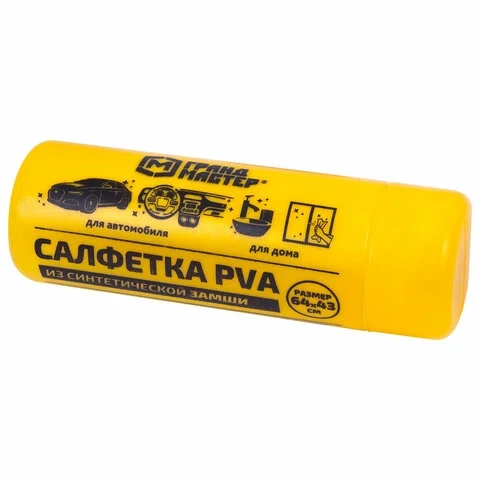 Салфетка синтетическая PVA-замша 64x43 см, в тубе, желтая, для авто, дома и офиса, ГРАНДМАСТЕР, 6099