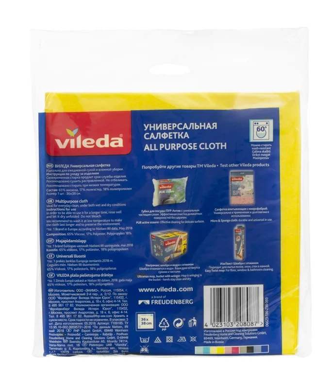 Салфетка Vileda универсальная вискозная 3шт, 36 х 38см