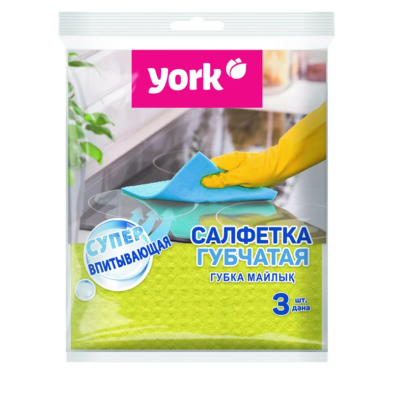 Салфетка York губчатая 15.5 x 17.5см, 3шт