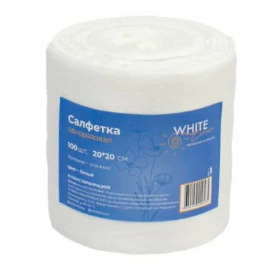 Салфетки в рулоне B.S 20х20см, 40г/м2, 100шт/уп, белые, спанлейс