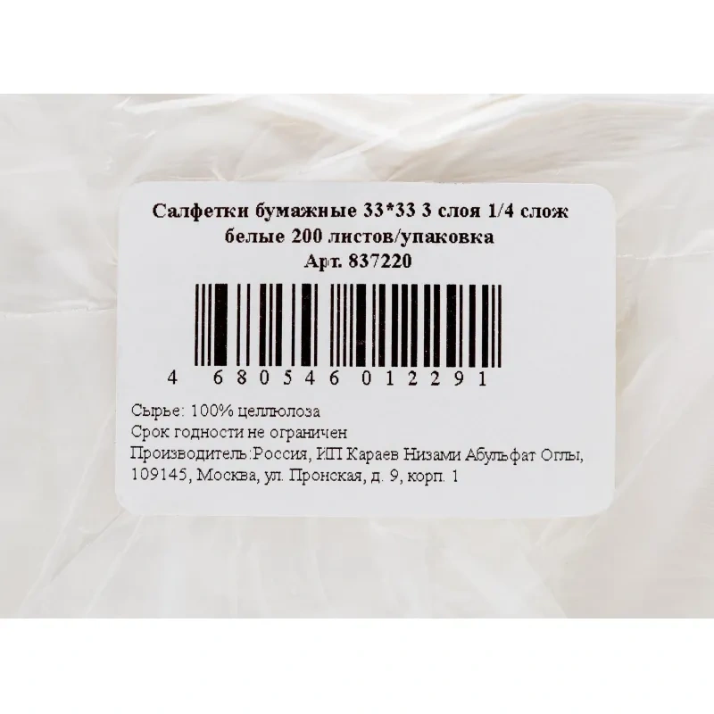 Салфетки 3 сл. 33х33 белые 1/4 слож 200 шт./уп.