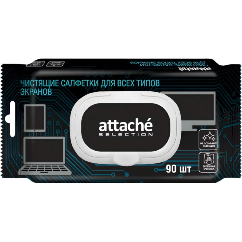 Салфетки Attache Selection д/чист. экранов, с клапаном, 90 шт