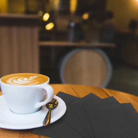 Изделия выполнены в классическом черном цвете. Тиснение придает салфеткам привлекательный внешний вид.