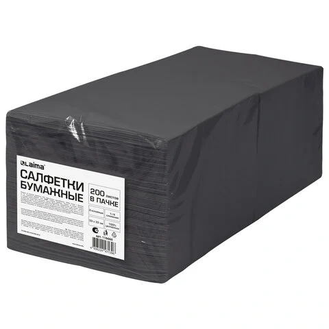 Отзывы о «Салфетки бумажные 2-х слойные, 33x33 см, 200 штук в упаковке, 1/4 сложение, LAIMA, черные, 116660»