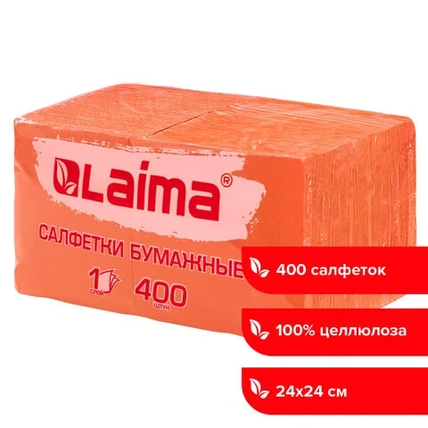 Салфетки бумажные 400 шт., 24х24 см, 'Big Pack', оранжевые, 100% целлюлоза, LAIMA, 114729