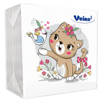 Салфетки бумажные Veiro 1 слойн., 24*24см, белые, с рисунком 'Котик', 50шт.