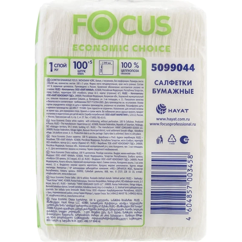 Салфетки сервировочные Focus Economic Choice 24х24см, белые, 1 слой, 100шт/уп, 5099044