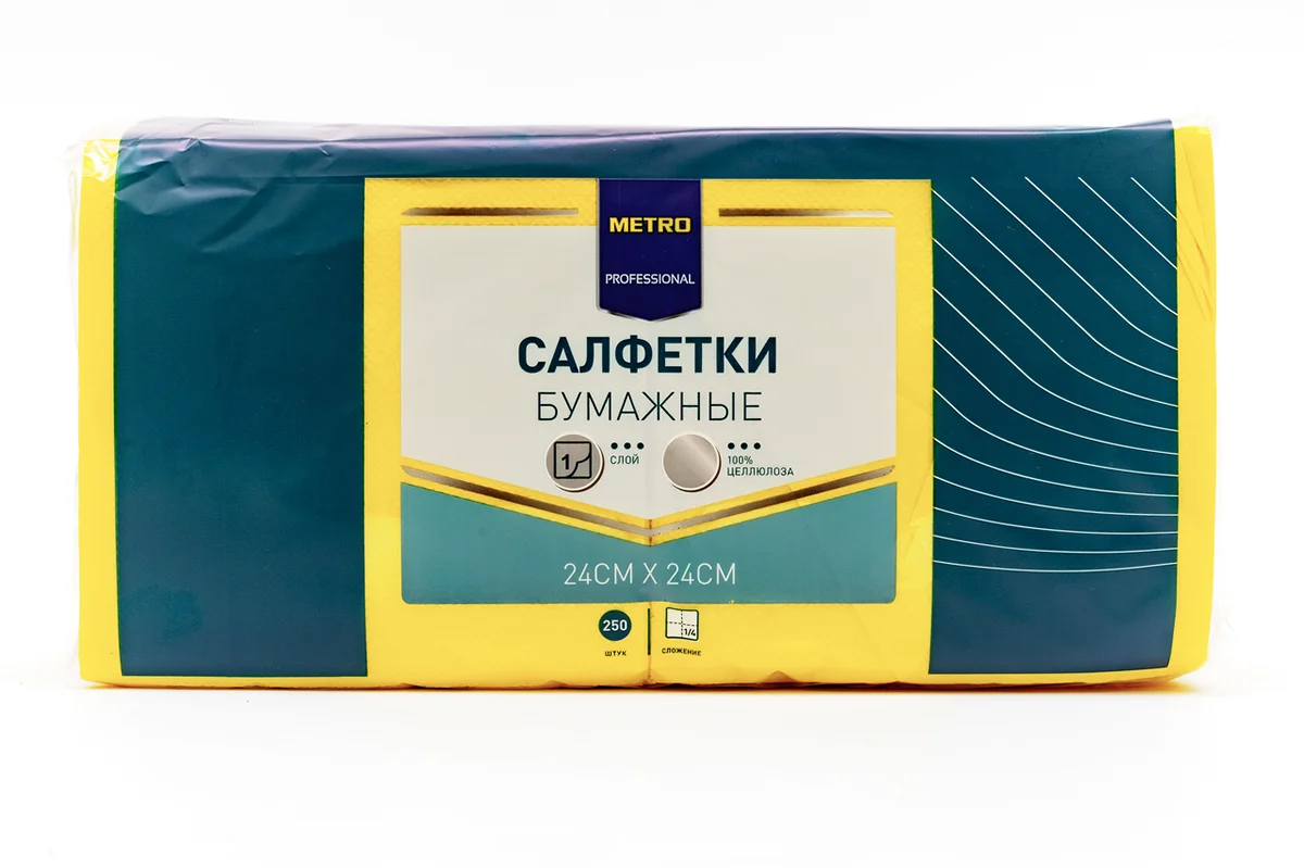 Салфетки сервировочные Metro Professional желтые, 24х24см, 1 слой, 250шт