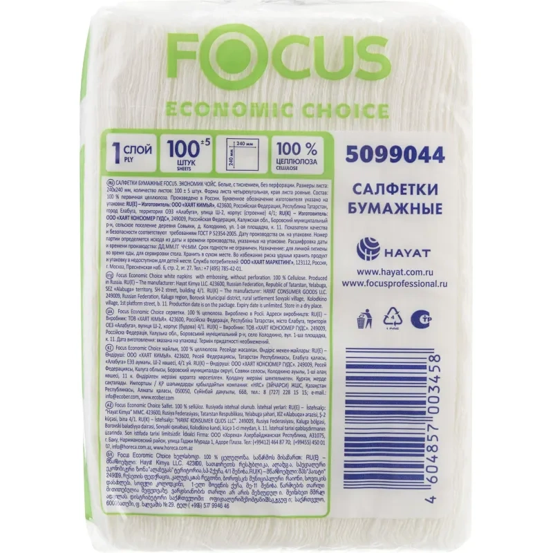 Салфетки бумажные FOCUS Economic Choice 24x24 см 1сл 100 шт/уп Спб Каз Перм