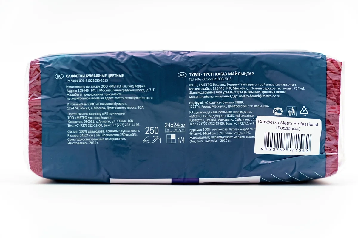 Салфетки сервировочные Metro Professional бордовые, 24х24см, 1 слой, 250шт