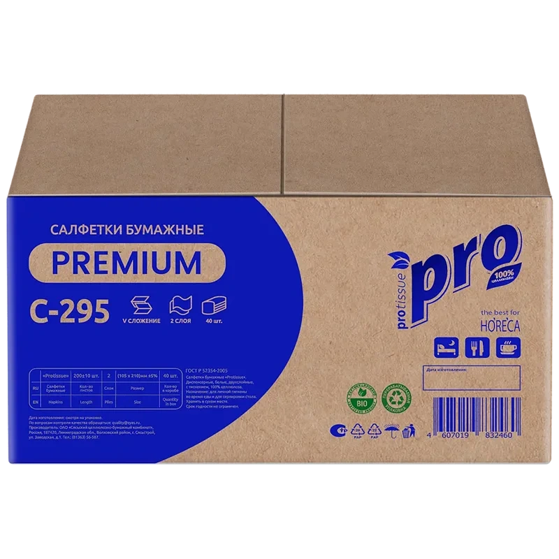 Диспенсерные салфетки Protissue С295 листовые, 2 слоя, 200шт, белые