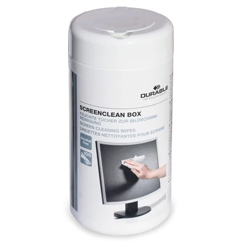 Влажные салфетки Durable Screenclean box без разводов и ворсинок очищают различные мониторы и экраны, устраняют статическое электричество, благодаря чему уменьшается количество оседаемой на их поверхностях пыли.