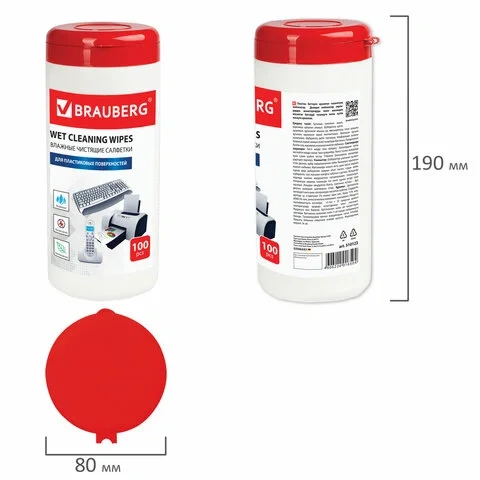 Салфетки чистящие для пластика Brauberg Power Clean 100 шт/уп, в тубе