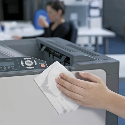 Они имеют размер 130х170 мм и выполнены из нетканного материла на целлюлозной основе плотностью 35 г/м2. Упакованы в пластиковую тубу по 100 штук. Пропитывающий раствор включает в себя комбинацию ионогенных и неионогенных ПАВ менее 5%, консервант, антистатический компонент, воду.