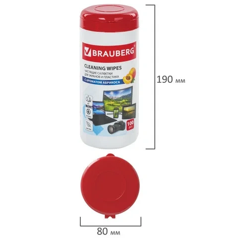 Салфетки чистящие для мониторов Brauberg абрикос, 100шт/уп, в тубе