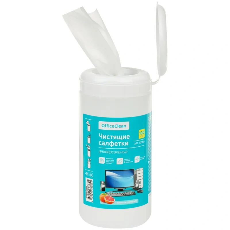 Салфетки чистящие влажные OfficeClean, универсальные, в тубе, с ароматом грейпфрута, 100шт.
