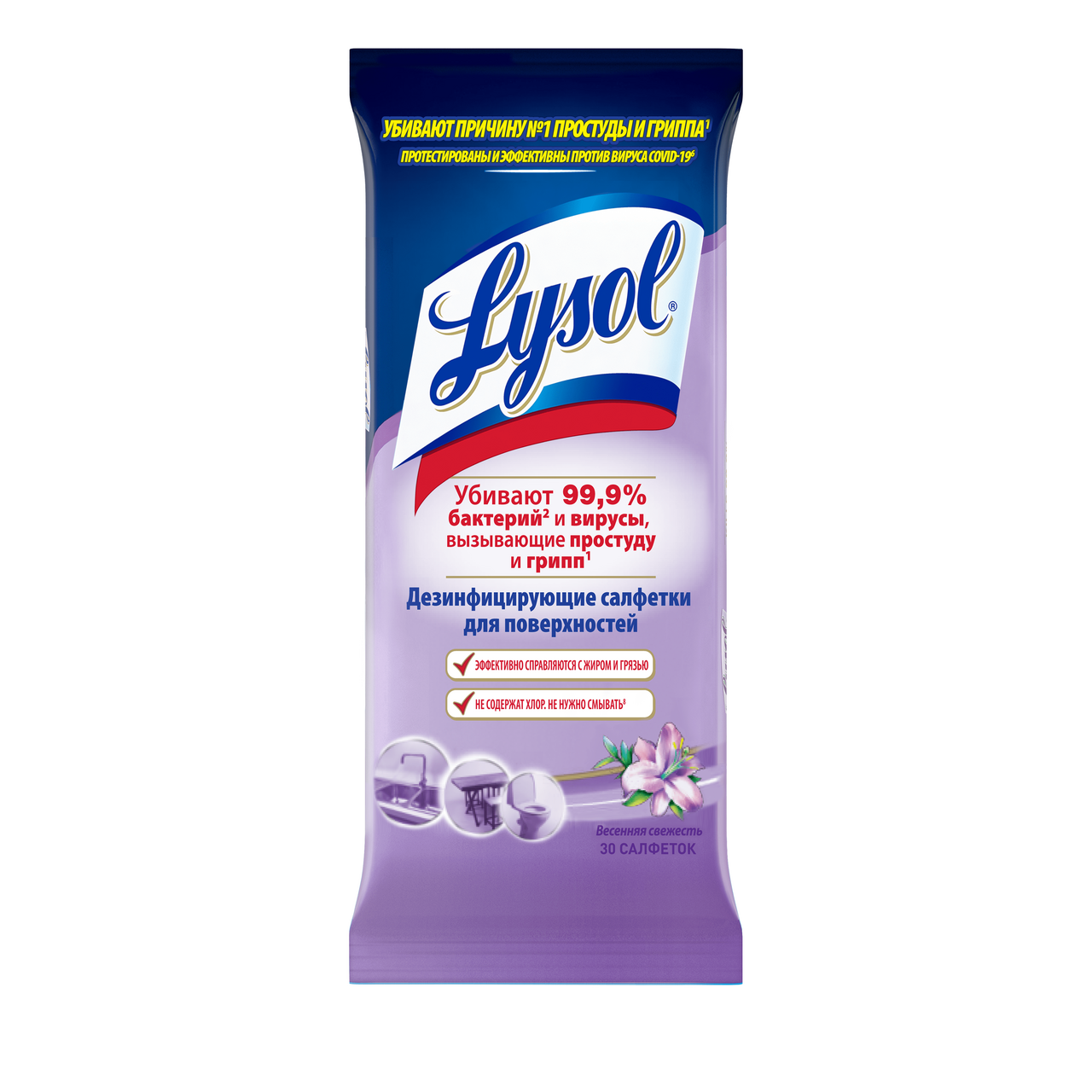 Салфетки дезинфицирующие для поверхностей Lysol Весенняя свежесть, 30шт