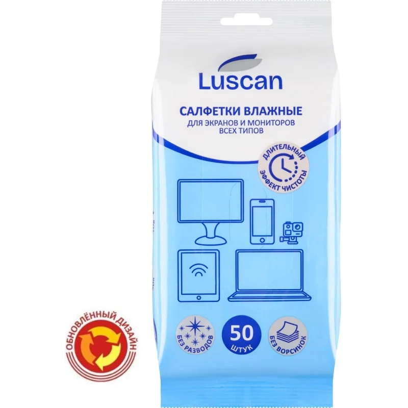 Салфетки чистящие для мониторов Luscan 50шт/уп, 150x180мм