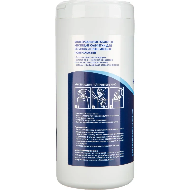 Салфетки чистящие для мониторов Defender 100шт, в тубе, CLN30102