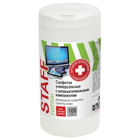 Салфетки чистящие универсальные Staff Everyday антибактериальные, 10х12см, 100шт/уп