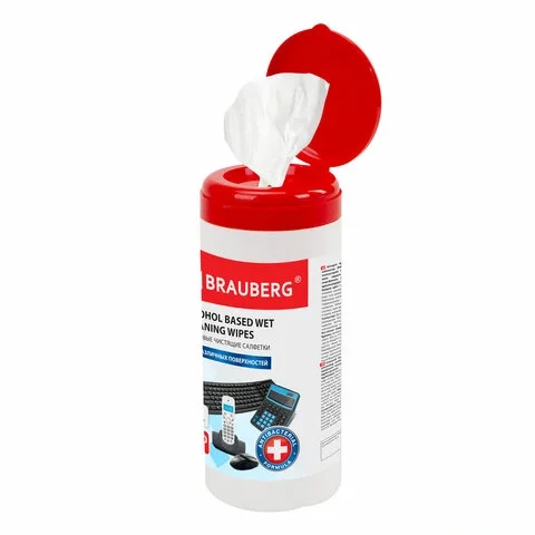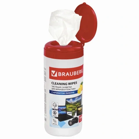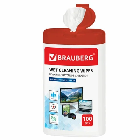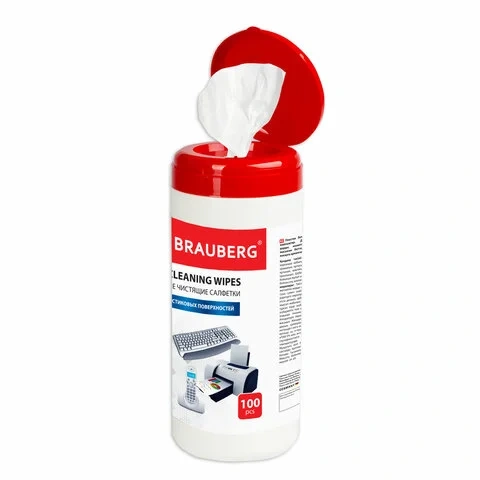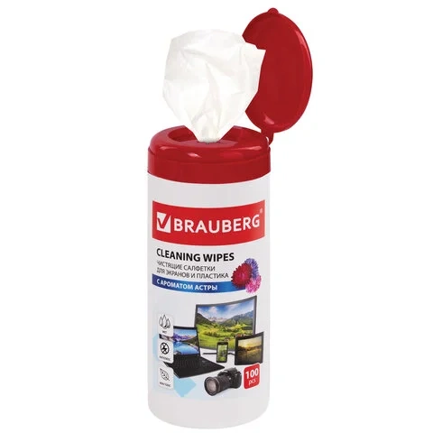 Салфетки чистящие для ноутбука Brauberg 100шт/уп, в тубе