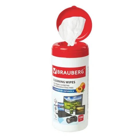 Салфетки чистящие для мониторов Brauberg абрикос, 100шт/уп, в тубе