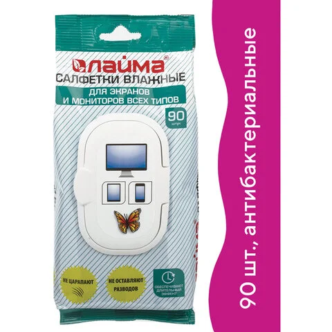 Салфетки чистящие для мониторов Brauberg Лимон, 100шт/уп