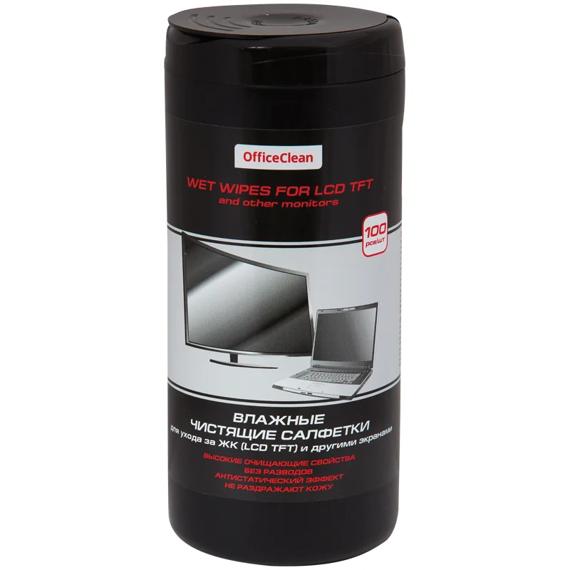 Салфетки чистящие для мониторов Officeclean Стандарт 100шт/уп, в тубе