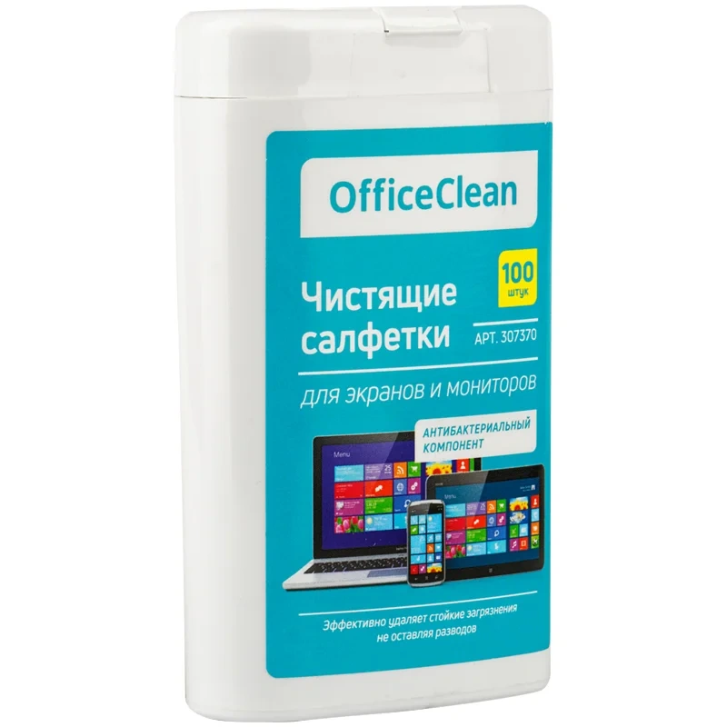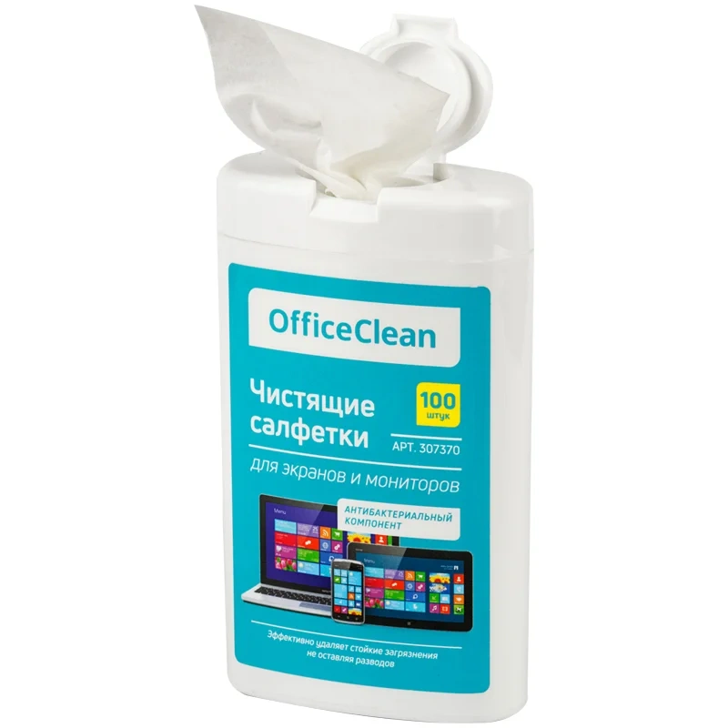 Влажные портативные чистящие салфетки OfficeClean для экранов и мониторов, 100шт. (малая плоская туб