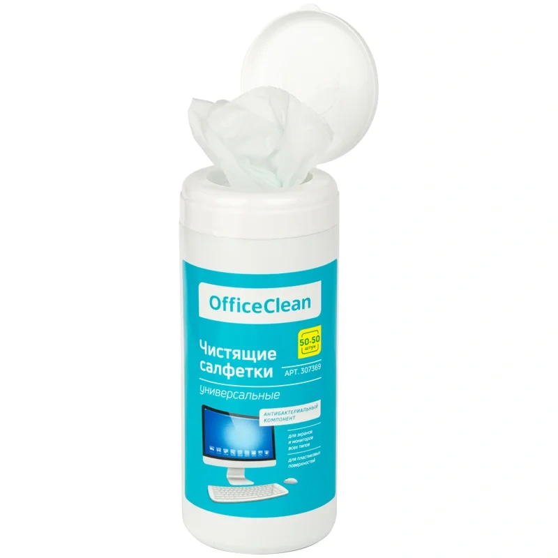 Универсальные влажные чистящие салфетки OfficeClean для очистки экранов и мониторов, пластиковых пов
